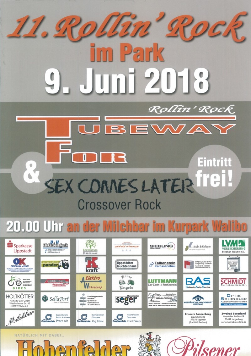 der "Rollin' Rock" ausgerufen. Die Veranstaltung erfreut sich mittlerweile grosser Beliebtheit. So wird es auch dieses Jahr wieder musikalisch einen interessanten Mix aus Rock , Rock'n Roll , Reggea ,Blues und etwas Pop geben.